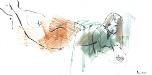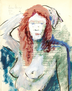 2023Schets in inkt en acryl van ons model 'Ines'. Met het prachtige rode haar.
